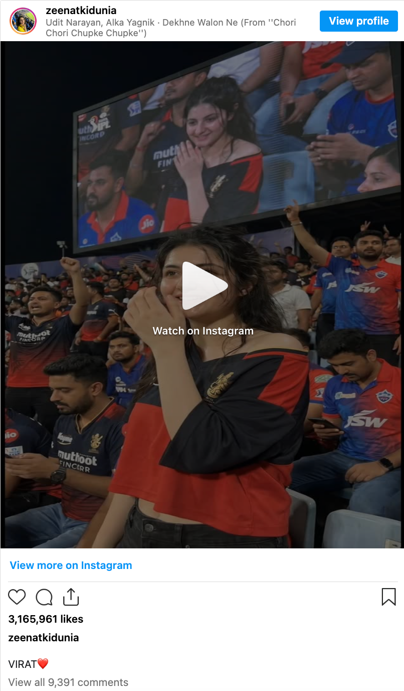 इस वीडियो को zeenatkidunia नाम के इंस्टाग्राम अकाउंट से शेयर किया गया, जिसके बाद यह तेजी से वायरल हो गया। लाखों लोग वीडियो देख चुके हैं और यूजर्स लगातार इस पर मजेदार कमेंट्स कर रहे हैं। एक यूजर ने लिखा, “यार ये कितनी क्यूट है”, तो दूसरे ने कहा, “कैमरामैन भी दिल हार बैठा।” वहीं एक अन्य यूजर ने मजाकिया अंदाज में लिखा कि आईपीएल में अब खिलाड़ियों से ज्यादा चर्चा स्टैंड्स में दिखने वाली हसीनाओं की हो रही है।